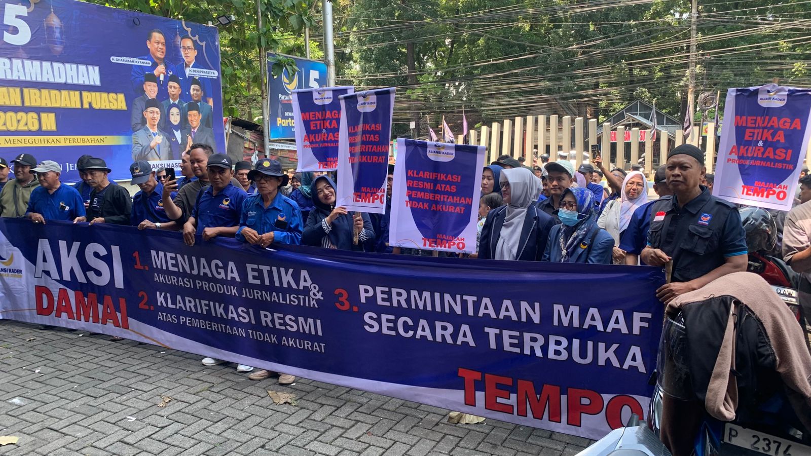 Sebagai bentuk pertanggungjawaban, massa menuntut Majalah Tempo diminta menyampaikan maaf secara terbuka dan tertulis kepada Surya Paloh serta seluruh kader NasDem se-Indonesia.