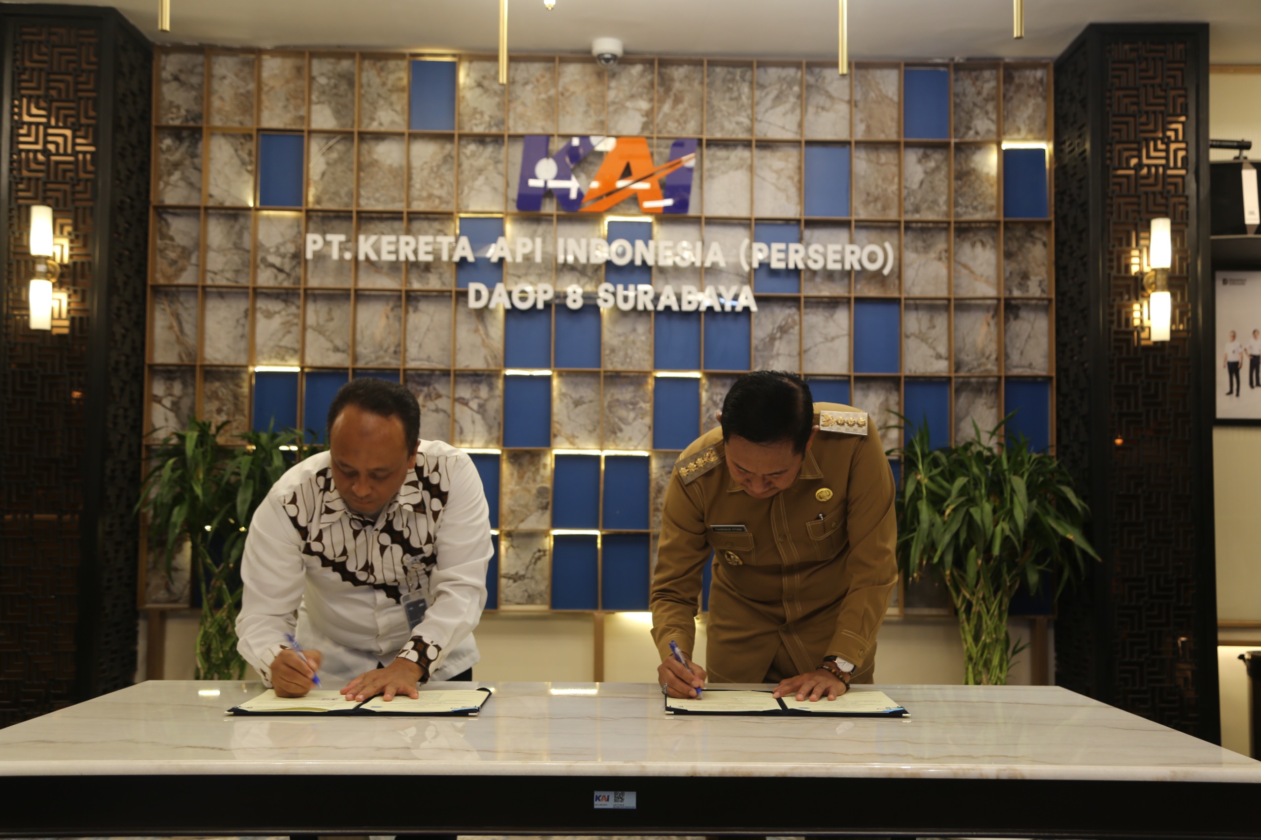 KabarBaik.co – Upaya meningkatkan keselamatan perjalanan kereta api sekaligus menata kawasan yang bersinggungan dengan jalur rel terus diperkuat. PT Kereta Api Indonesia (Persero) Daerah Operasi 8 Surabaya resmi menandatangani Nota Kesepahaman (MoU) dengan Pemerintah Kabupaten Lamongan, Rabu (17/9), di Ruang Airlangga, Kantor Daop 8 Surabaya.