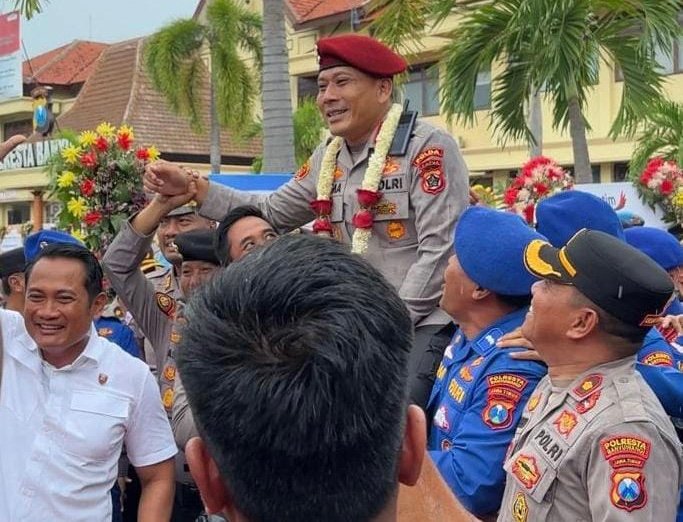Tawa dan tangis membersamai setiap gerak langkahnya menuju gerbang mako untuk melanjutkan pengabdiannya setelah 15 bulan menjabat sebagai Kapolresta Banyuwangi.