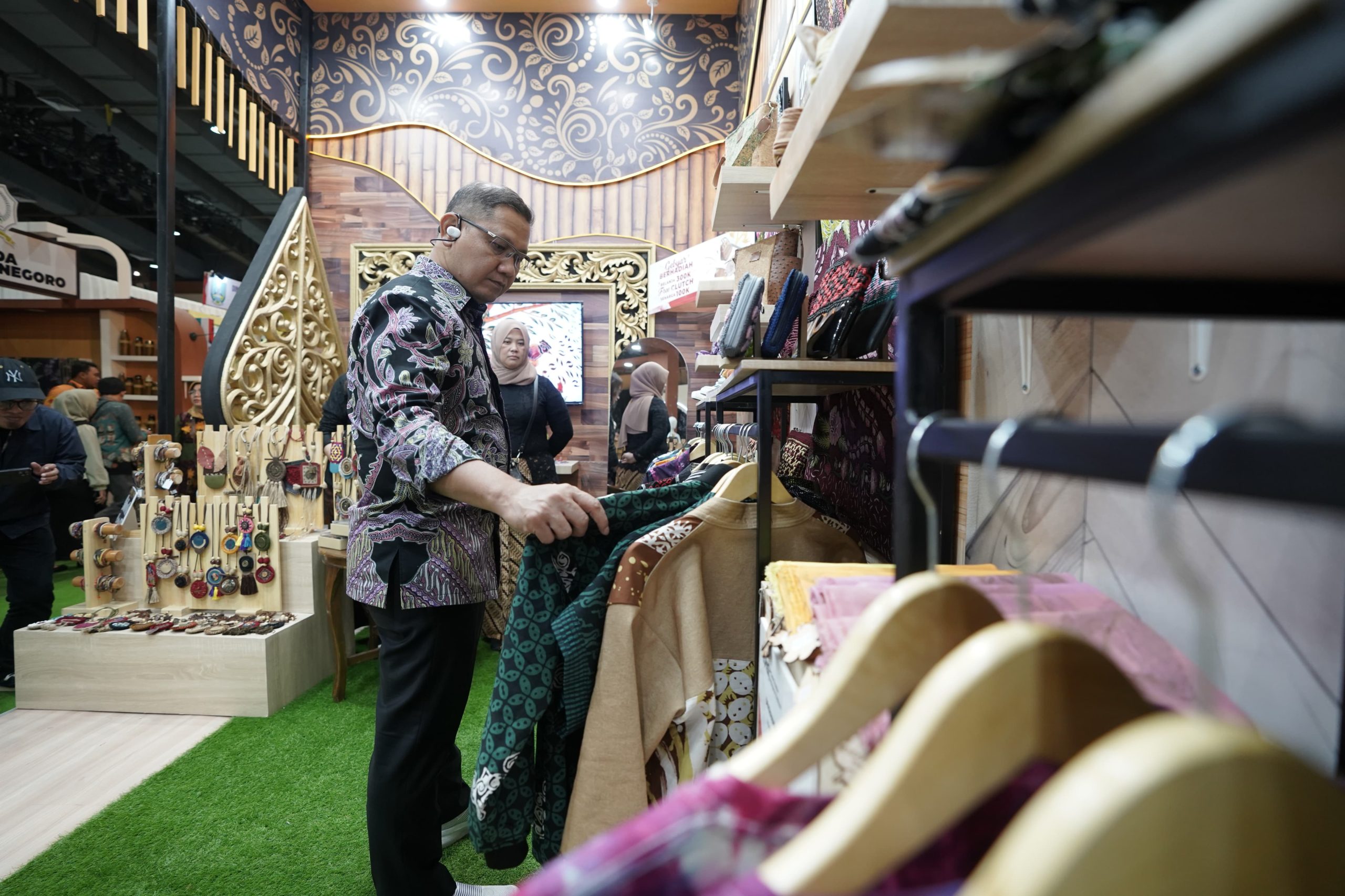 Pj Wali Kota Batu Aries Agung Paewai melihat pakaian saat menghadiri KriyaNusa 2024. (Foto: Istimewa)