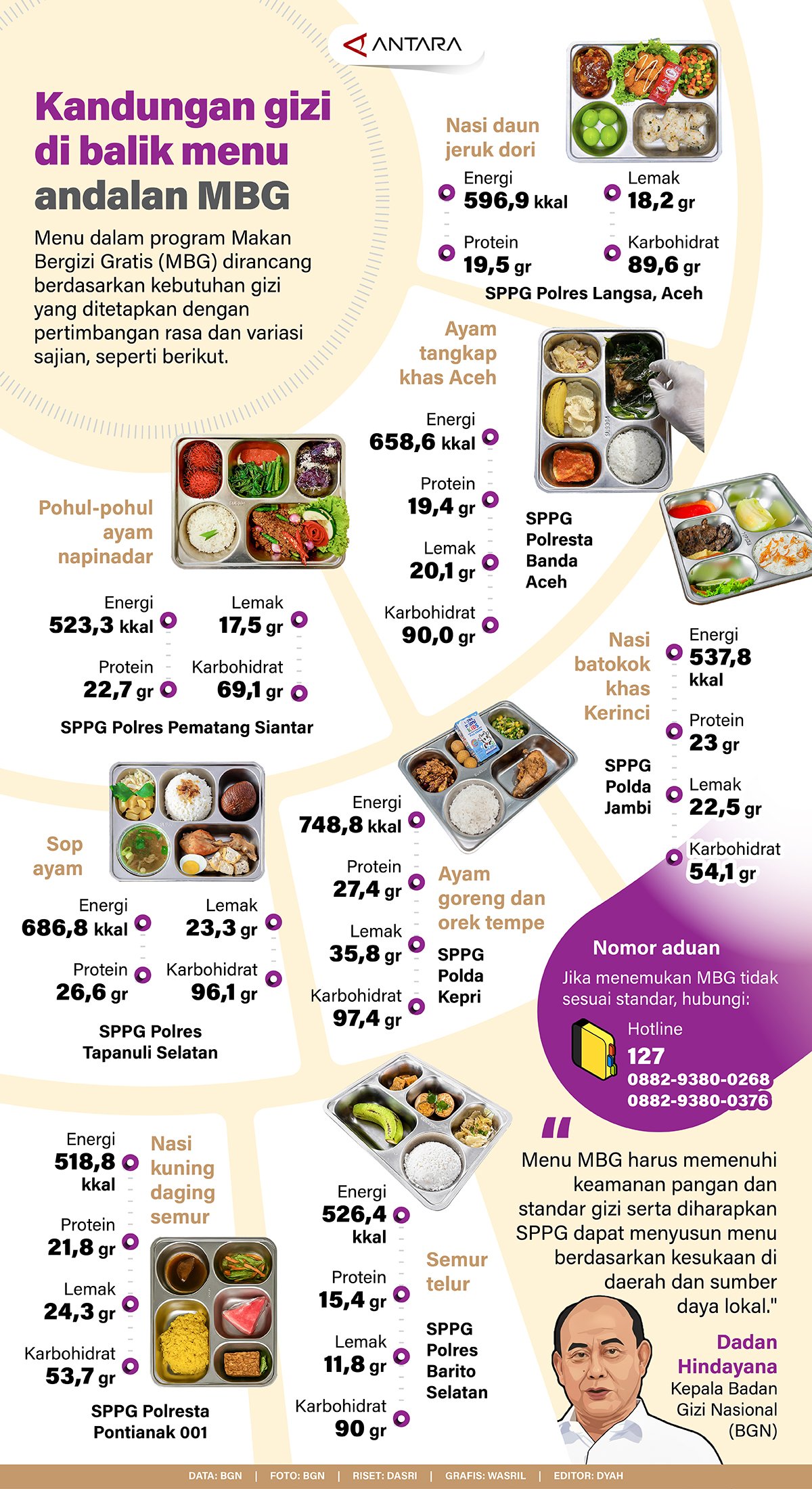 KabarBaik.co, Jakarta – Menu dalam program Makan Bergizi Gratis (MBG) dirancang berdasarkan kebutuhan gizi yang ditetapkan dengan pertimbangan rasa dan variasi sajian, Seperti apa? (ANTARA)