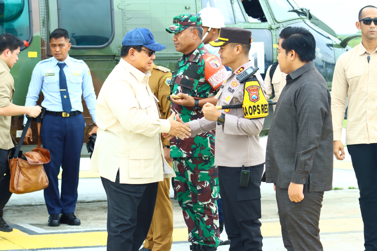 Kapolres Gresik AKBP Rovan Richard Mahenu menyambut Presiden Prabowo Subianto. (Foto: Ist)