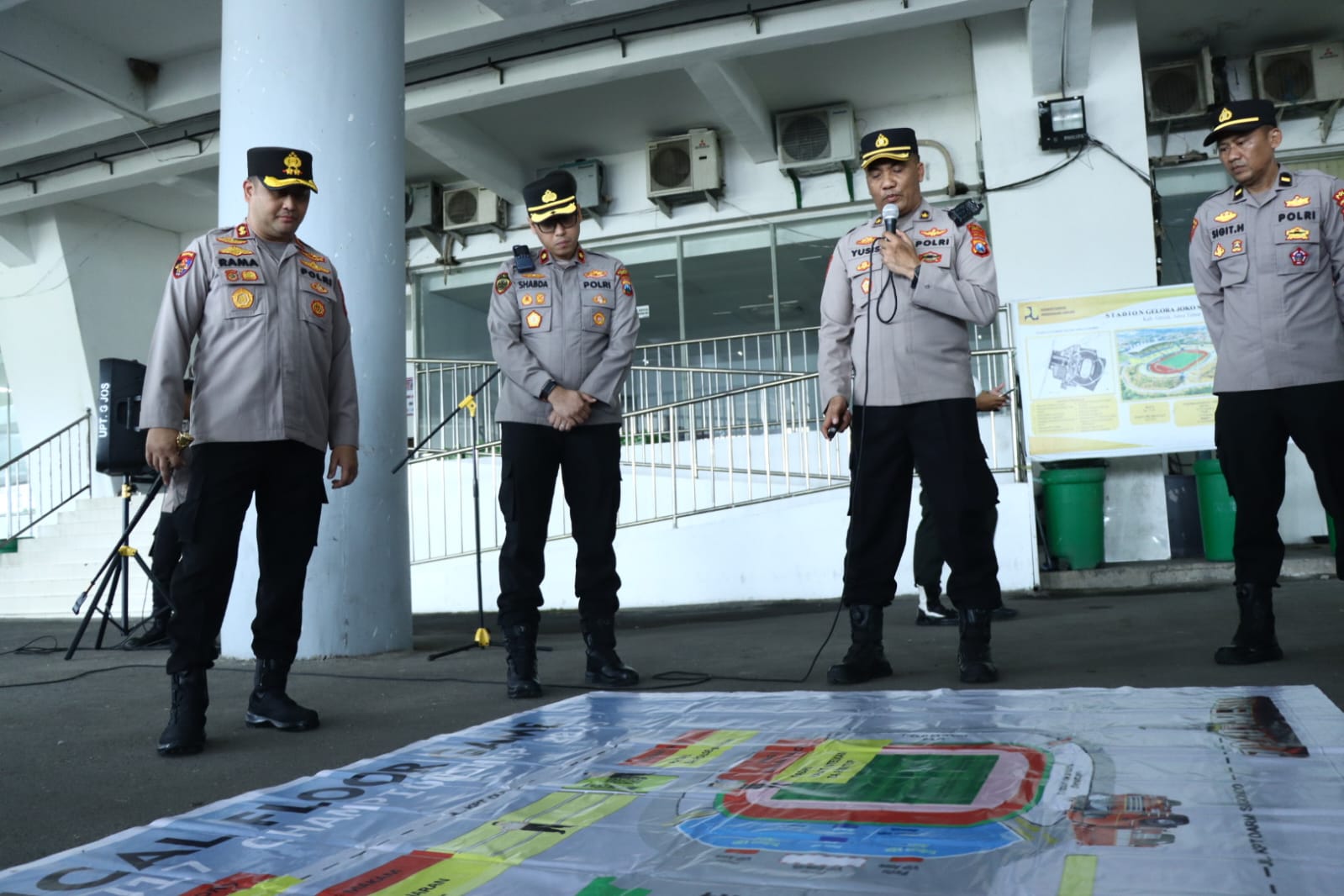Usai apel, kegiatan dilanjutkan dengan Tactical Floor Game (TFG) guna mematangkan strategi pengamanan di lapangan.