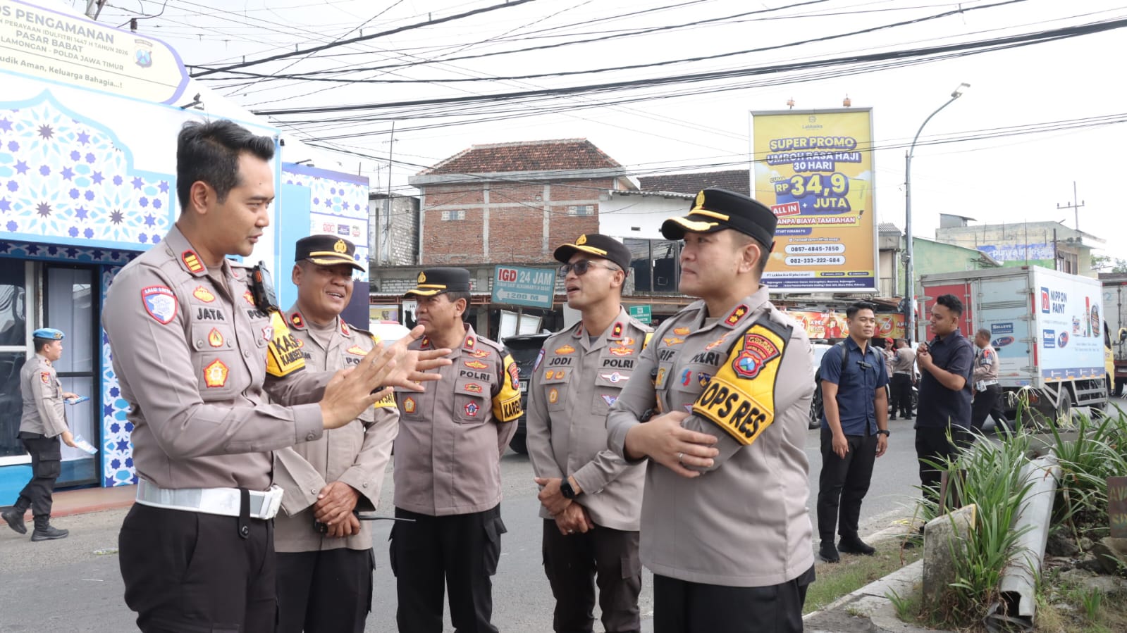 Peninjauan itu diikuti oleh para Pejabat Utama (PJU) Polres Lamongan. Rangkaian kunjungan diawali di Pos Pam Babat.