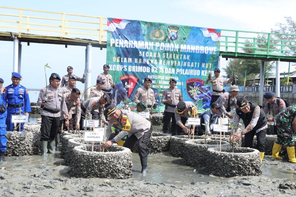 Kegiatan apel penanaman pohon Mangrove untuk HUT Brimob Polri dan Polairud berjalan dengan aman, lancar, dan kondusif, memberikan harapan akan keberlanjutan pelestarian lingkungan di masa mendatang.(kb05)