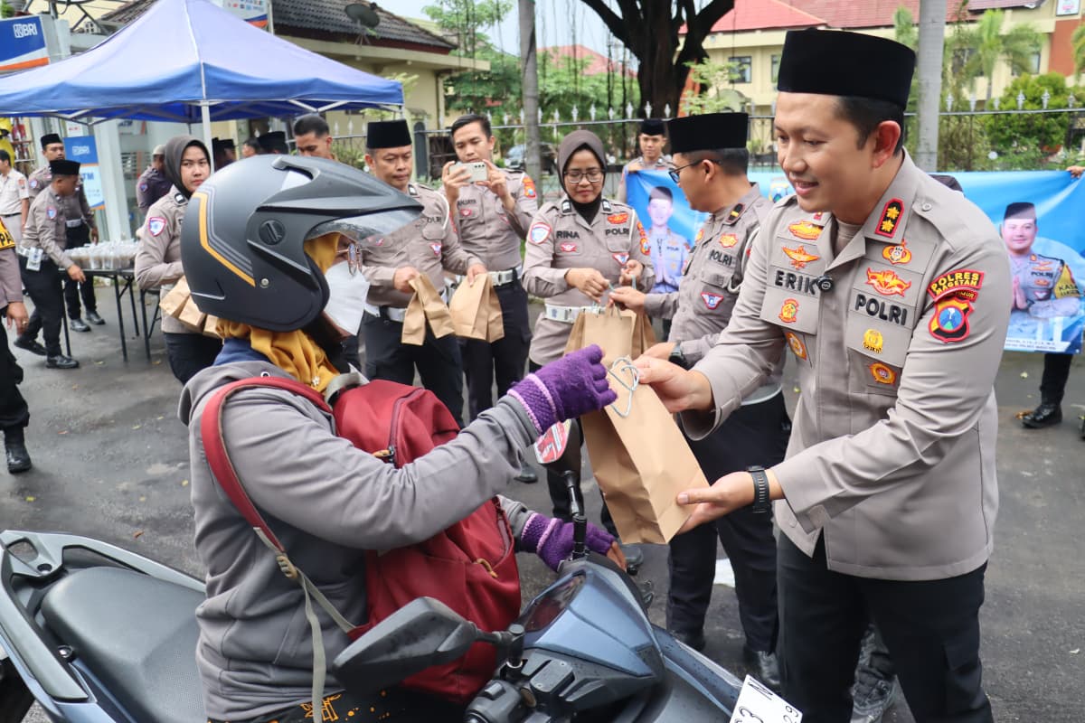 Kapolres Magetan AKBP Raden Erik Bangun Prakasa menyampaikan bahwa momentum Ramadan menjadi saat yang tepat untuk berbagi sekaligus mengingatkan pentingnya keselamatan di jalan raya.
