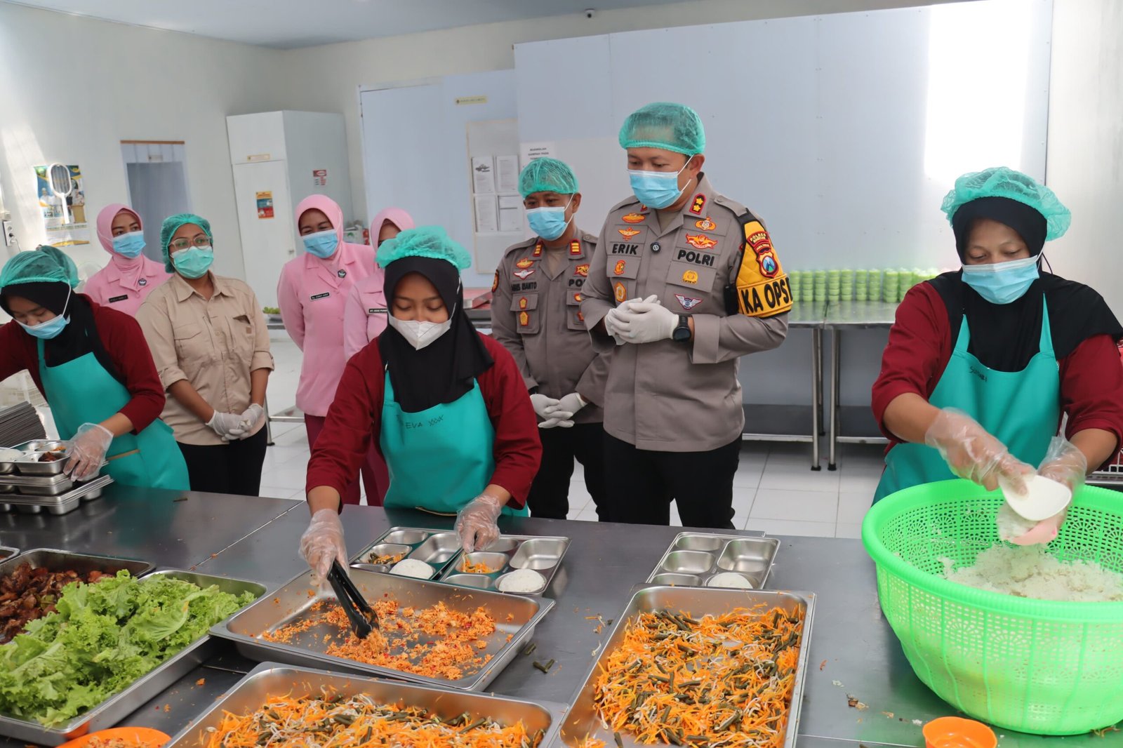 Selain itu, Kapolres juga berinteraksi langsung dengan para petugas untuk memastikan setiap tahapan kerja dilaksanakan sesuai standar kebersihan dan keamanan pangan.