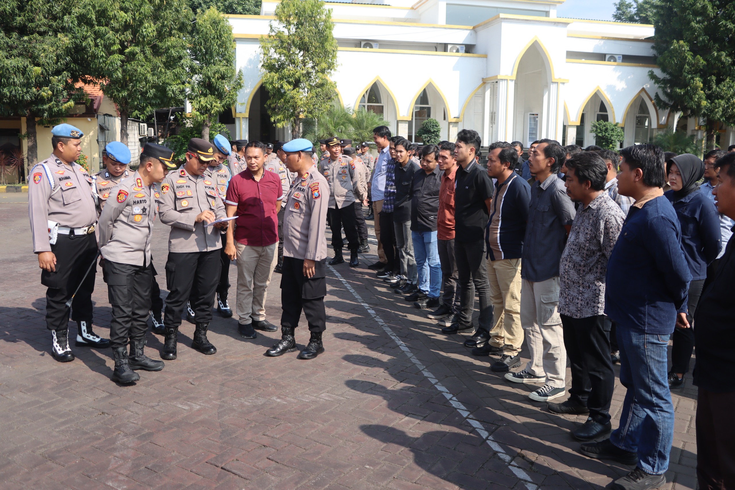 Kapolres Pasuruan Harto Agung Cahyono didampingi PJU mengecek kehadiran anggota. (Foto: Zia Ulhaq)