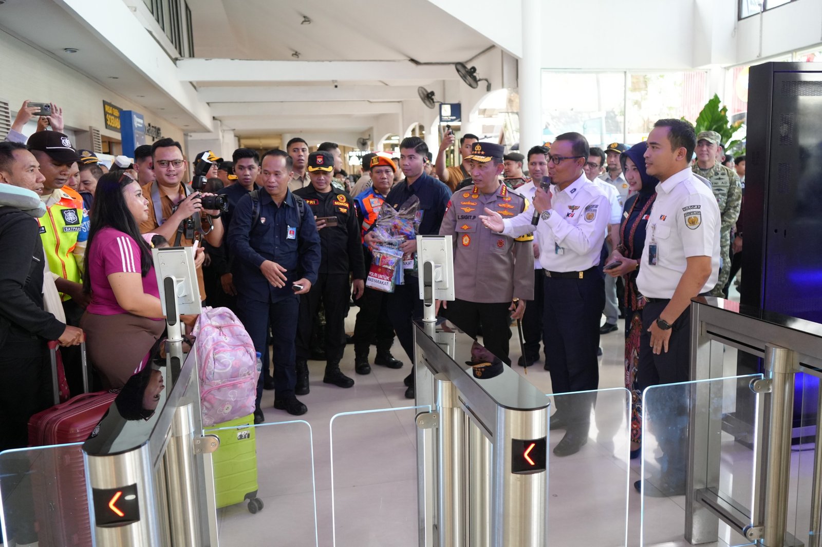 Selain meninjau fasilitas, Kapolri juga berinteraksi langsung dengan petugas serta para penumpang. Ia ingin melihat secara langsung kondisi pelayanan di lapangan sekaligus memastikan kesiapan pengamanan di area stasiun.