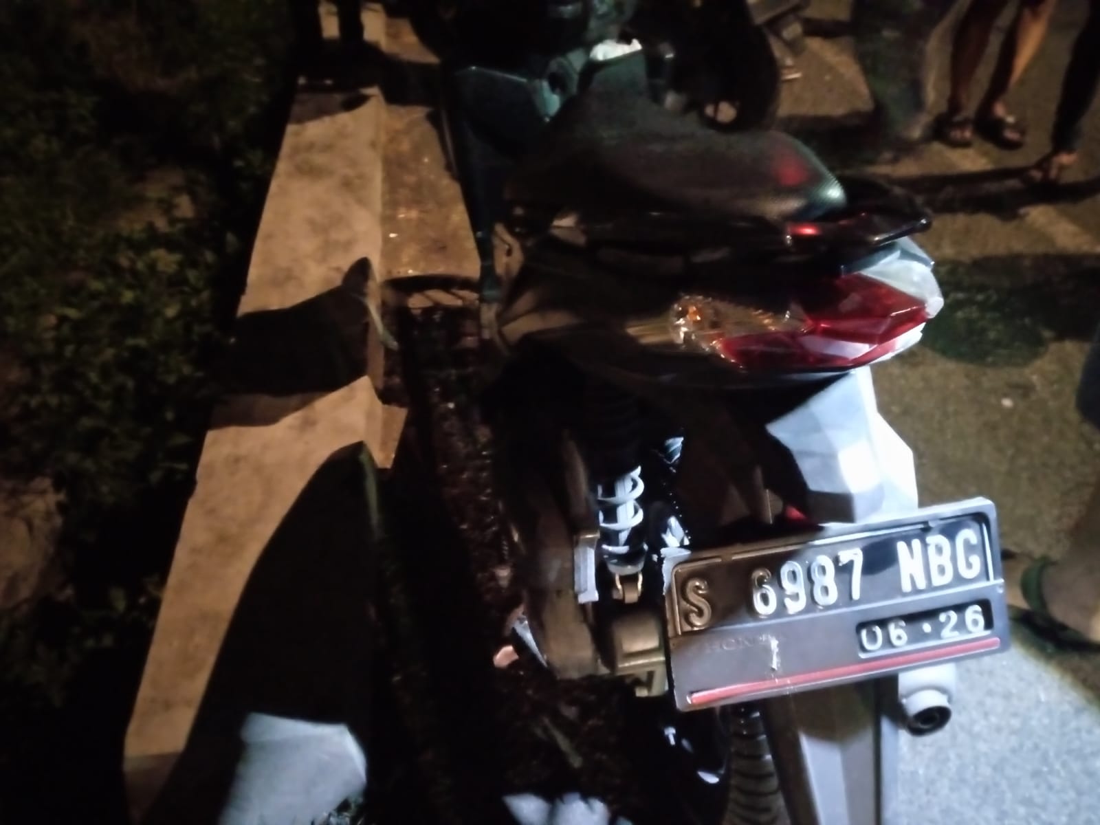 “Motornya dari arah barat. Waktu sampai sini, kayaknya rodanya kena gundukan aspal. Langsung oleng dan jatuh,” ujar Umar.
