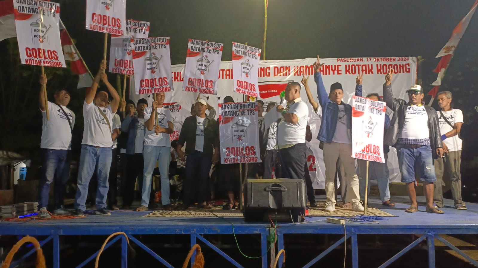 “Kami datang dan berdiri di sini ini dengan semangat yang sama. Kami ingin ada perubahan, tapi calon tunggal yang ada belum bisa merepresentasikan sebagai figur yang bisa membawa perubahan untuk Kota Pasuruan,” jelas Ayi.