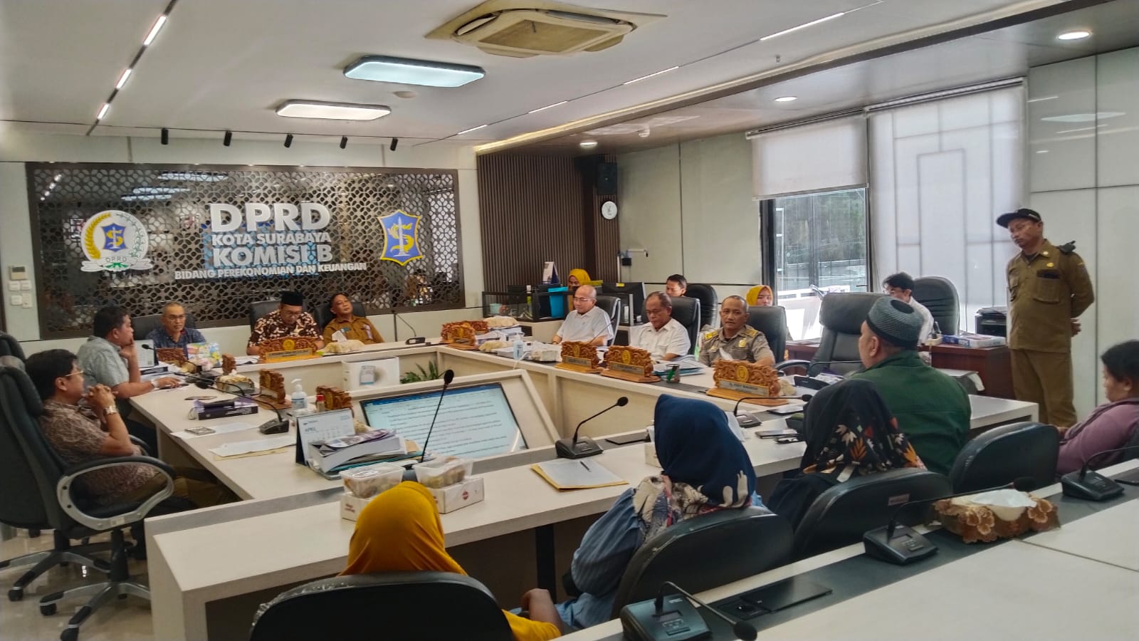 Suasana RDP komisi B DPRD kota Surabaya dan para pedagang. (Sugiantoro).