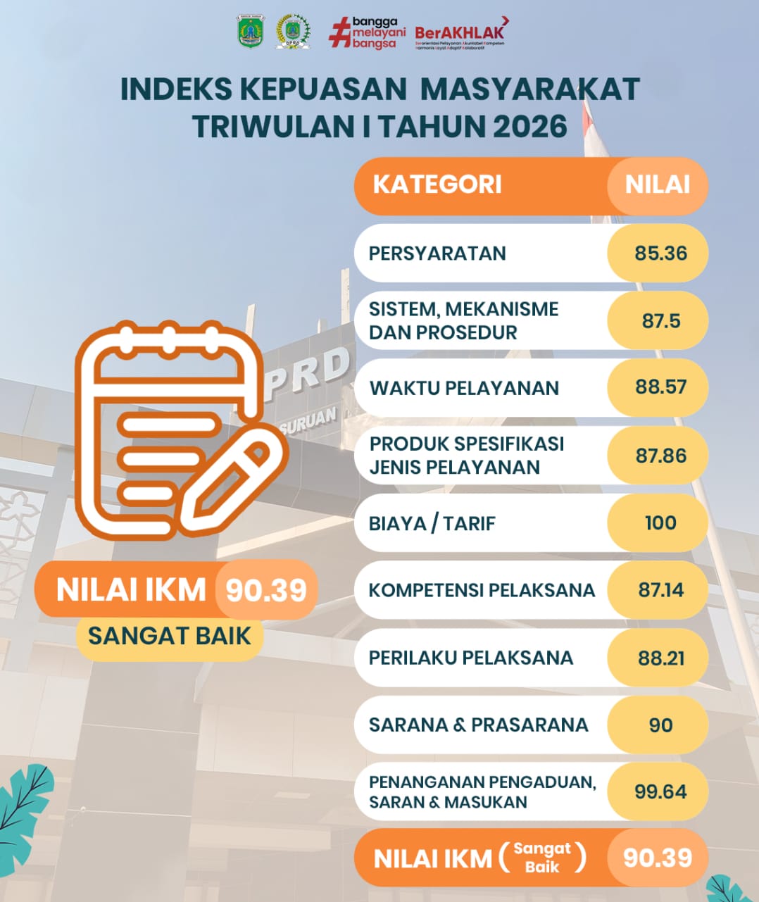 KabarBaik.co, Pasuruan – Dewan Perwakilan Rakyat Daerah (DPRD) Kabupaten Pasuruan kembali mencatatkan prestasi membanggakan dengan meraih nilai Indeks Kepuasan Masyarakat (IKM) sebesar 90.39 pada triwulan 1 tahun 2026 dengan kategori sangat baik.