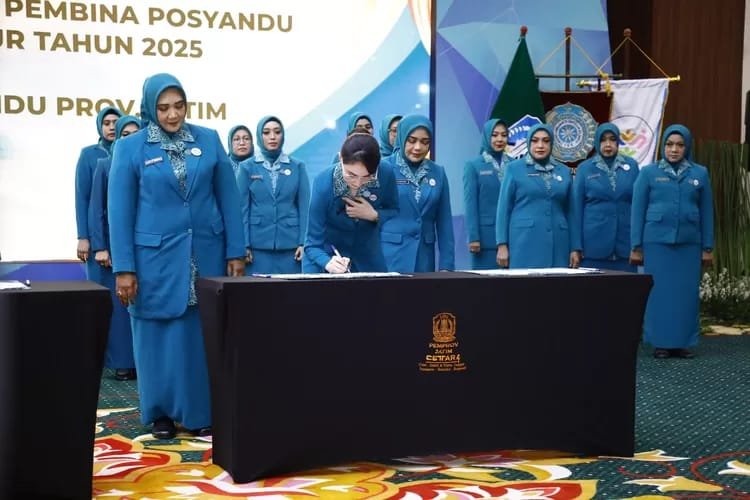 Pelantikan dilakukan serentak bersama 35 Ketua TP PKK dan Ketua Pembina Posyandu kabupaten/kota lainnya se-Jawa Timur di Gedung Negara Grahadi pada Minggu (2/3).