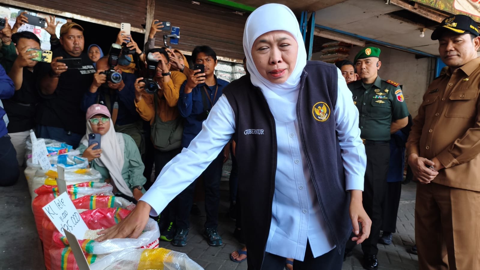 Khofifah Sidak Pasar Larangan Temukan Beras SPHP Kosong, Premium Mendominasi