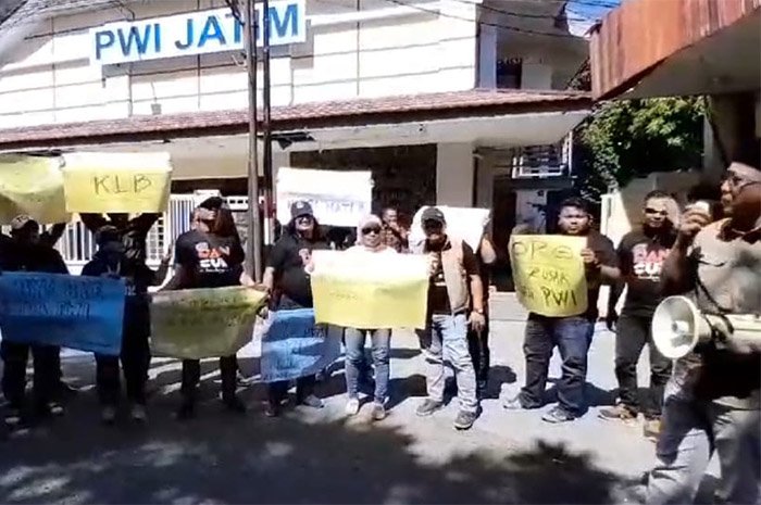 KabarBaik.co- Aksi menyuarakan Kongres Luar Biasa (KLB) di balik silang sengkarut kepengurusan Persatuan Wartawan Indonesia (PWI) Pusat, semakin meluas. Senin (22/7) siang, giliran puluhan pekerja media pers di Jatim berunjukrasa menuntut KLB. Aksi digelar di depan Gedung PWI Jatim, Jalan Taman Apsari, Surabaya.