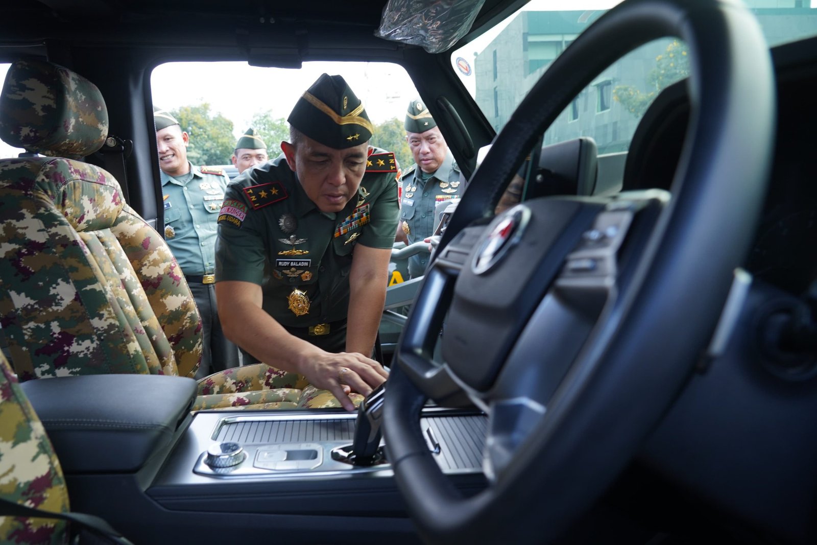 Pangdam V/Brawijaya Mayjen TNI Rudi Saladin mengecek langsung kondisi kendaraan Maung yang diterima Kodam V/Brawijaya.