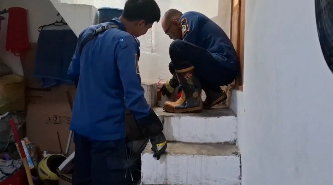 Kodok berukuran sedang itu melompat-lompat dan bersembunyi di balik timba di dalam rumah. Karena takut, Ibu Gadis langsung menghubungi Damkar Gresik.