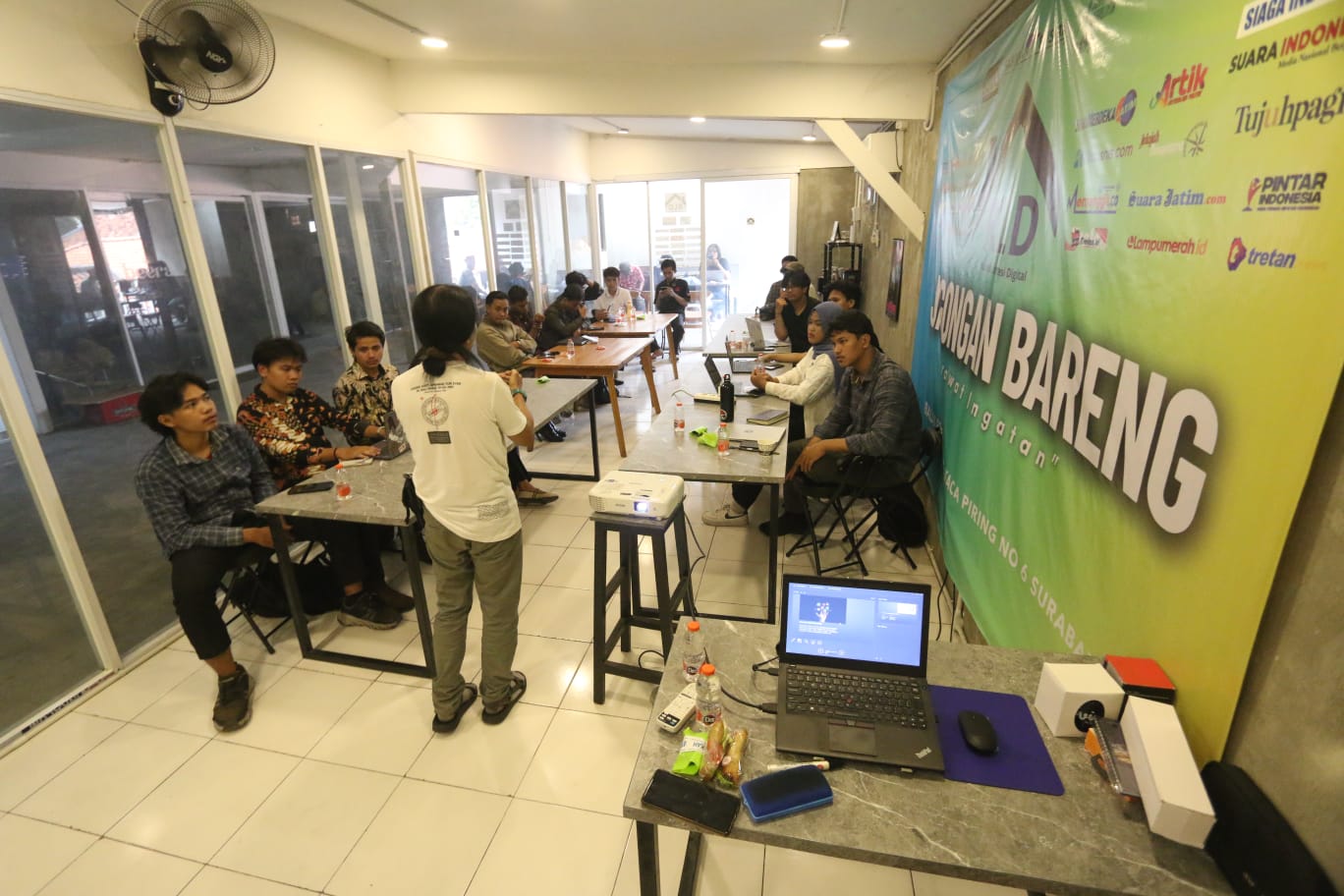 Pelatihan yang berlangsung di Balai RW RLD, Jalan Kaca Piring 6, Surabaya, ini diikuti puluhan mahasiswa dari berbagai perguruan tinggi. Kegiatan dirancang intensif dengan memadukan pemahaman teori dan praktik jurnalistik media daring.