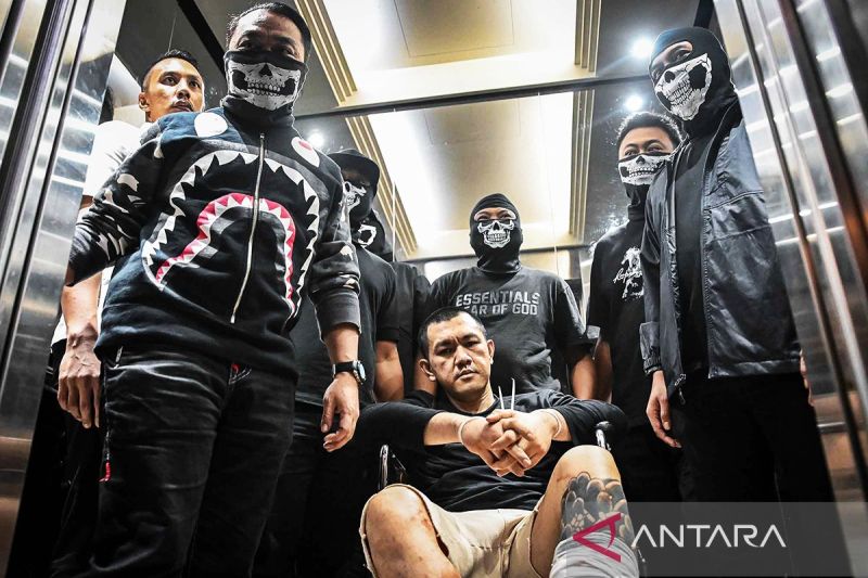 Terduga pemasok narkoba Andre Fernado alias The Doctor duduk di kursi roda di Bareskrim Polri (ANTARA FOTO/Sulthony Hasanuddin/YU/aa)