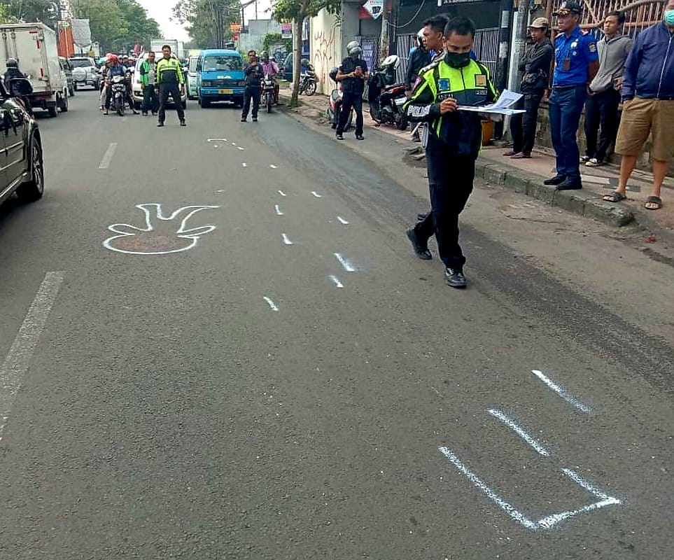 Polisi olah TKP saat A. Yudi kecelakaan hingga meninggal dunia. (Foto: P. Priyono)