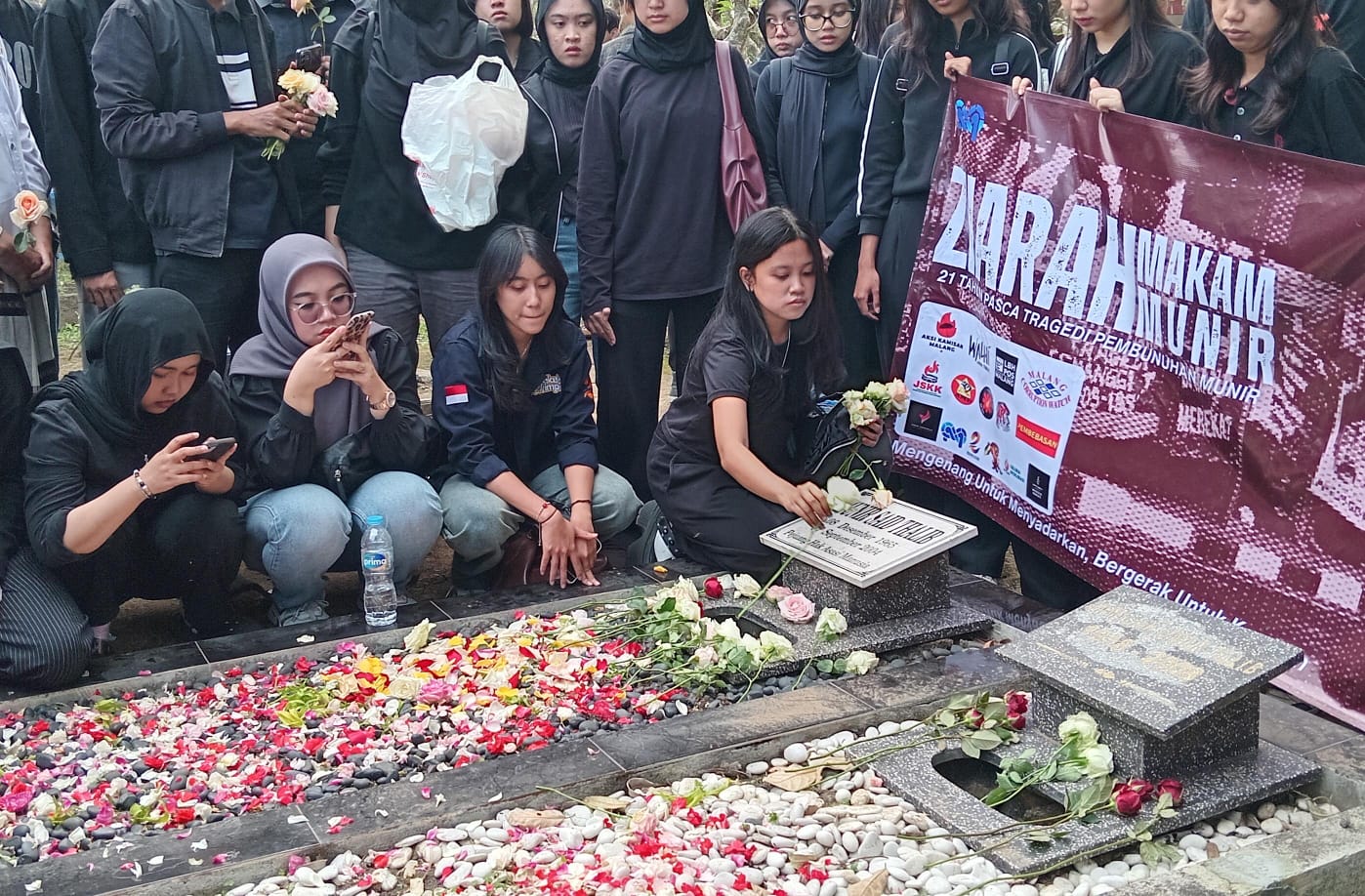 KabarBaik.co – Puluhan mahasiswa Eksekutif Mahasiswa (EM) Fakultas Hukum Universitas Brawijaya (UB) menggelar ziarah ke makam aktivis HAM Munir Said Thalib di TPU Sisir, Kota Batu, Minggu (7/9). Agenda memperingati dua puluh satu tahun terbunuhnya Munir ini menjadi rangkaian kegiatan rutin tahunan bertajuk September Hitam.