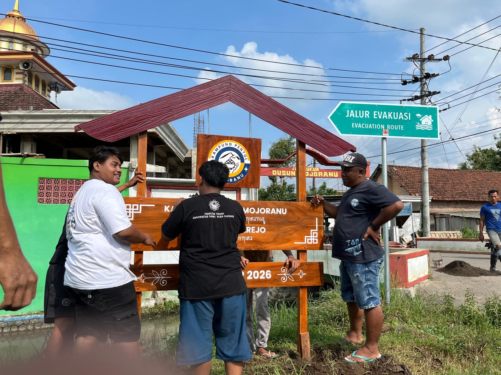 KabarBaik.co, Jombang – Mahasiswa Kuliah Kerja Mahasiswa (KKM) Universitas Darul Ulum Jombang memasang plang bertuliskan ‘Kampung Pentol’ di Dusun Mojoranu, Desa Tanggalrejo, Mojoagung.
