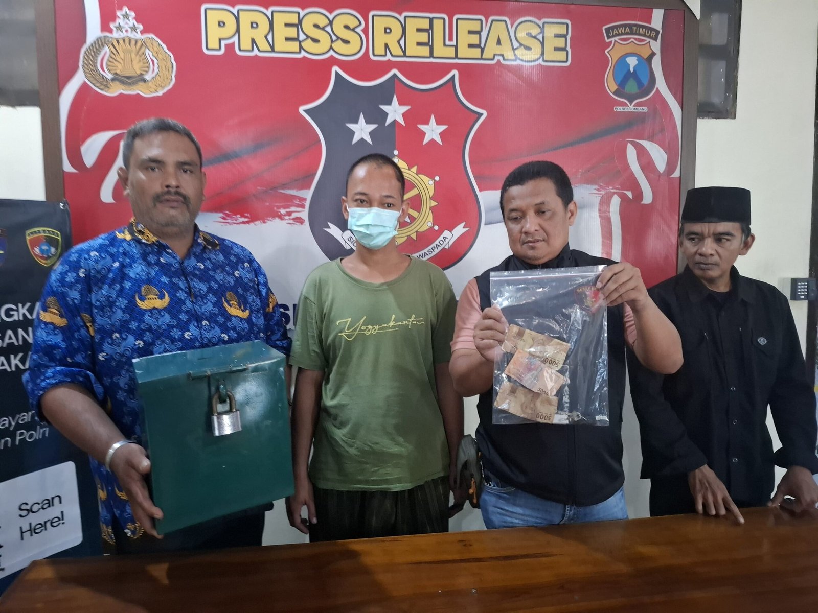 Aksi Arta diketahui warga dan direkam oleh pemilik rumah di sekitar masjid. Usai mengambil uang, pelaku melarikan diri hingga akhirnya ditangkap polisi di kawasan Alun-alun Jombang pada malam harinya.