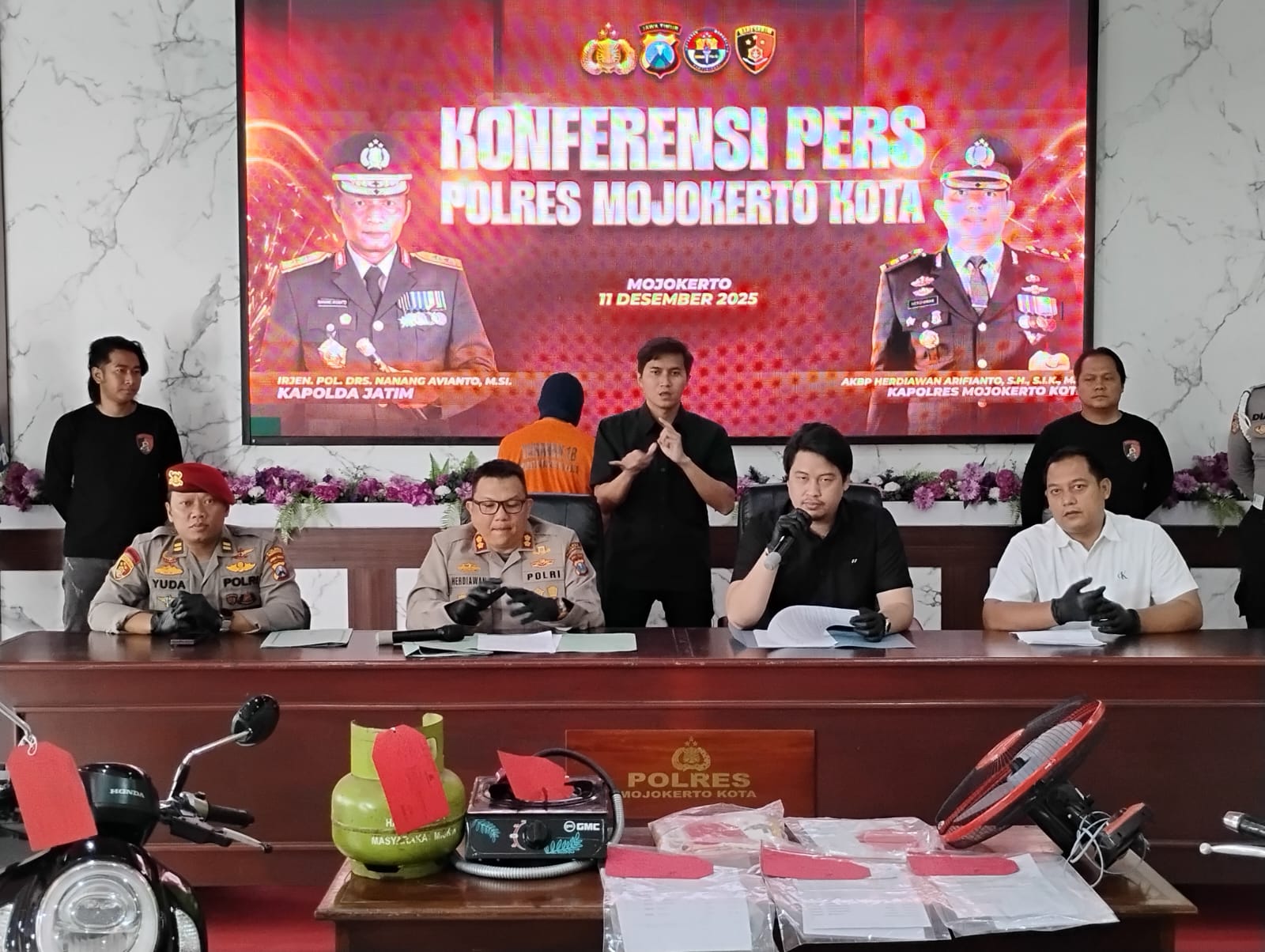Kapolres Mojokerto Kota AKBP Herdiawan Arifianto saat menggelar konpres (istimewa)