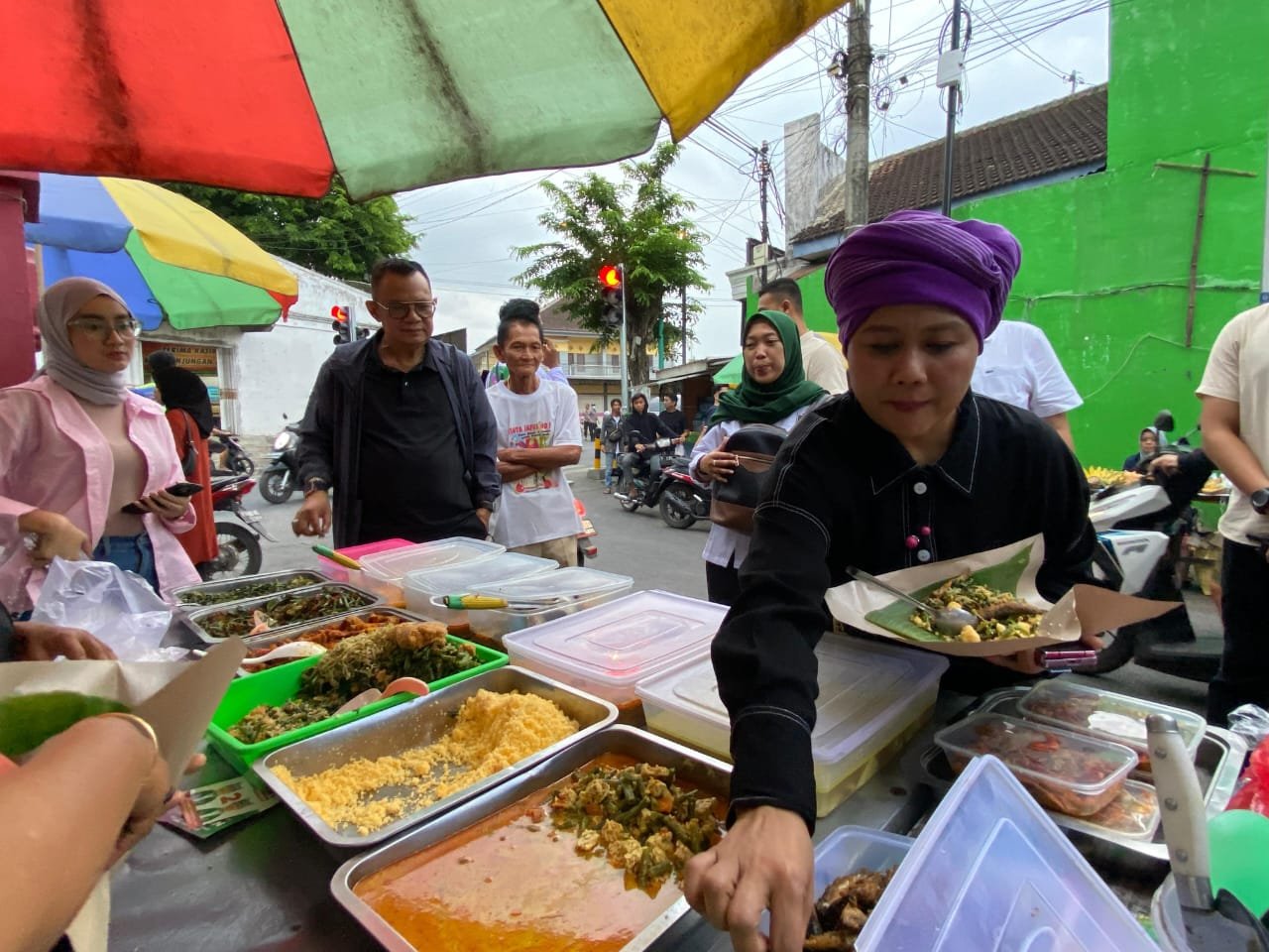 Mulai dari kios buah, daging, jajanan basah, cilok, hingga warung nasi pinggir jalan turut disambangi oleh perempuan asal Jombang ini. Tak hanya mampir dia juga berbelanja di setiap kios yang didatanginya.
