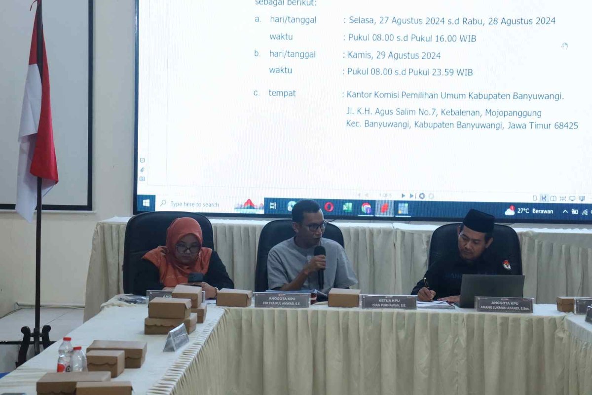 Dalam upaya memastikan proses Pemilihan Kepala Daerah Serentak berjalan lancar, KPU Banyuwangi menggelar Rapat Koordinasi Teknis bersama Forum Komunikasi Pimpinan Daerah (Forkopimda) serta pimpinan partai politik tingkat kabupaten.