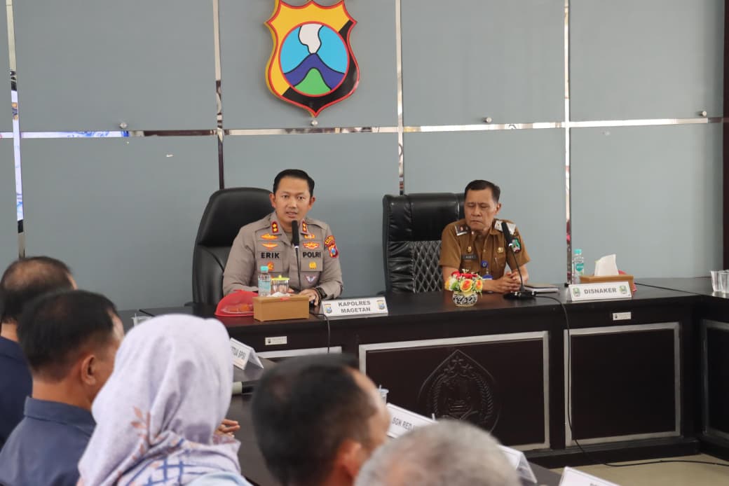 “Dalam kesempatan rapat ini kita akan menyamakan persepsi terkait perayaan hari Mayday Tahun 2026 di Kabupaten Magetan,” ujar AKBP Erik.