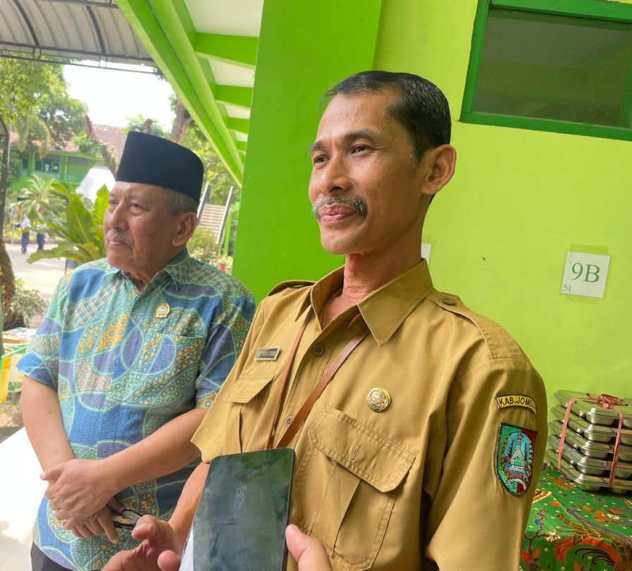 Kepala sekolah SMPN 1 Jombang Rudi Priyo Utomo di dampingi Ketua Dewan Pendidikan Jombang (Teguh Setiawan)