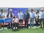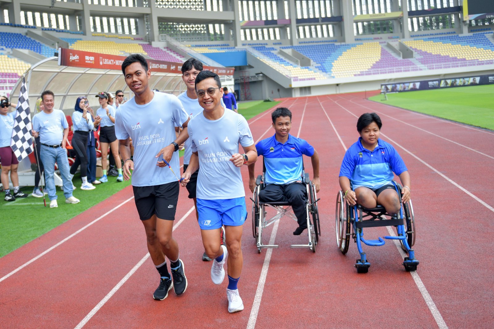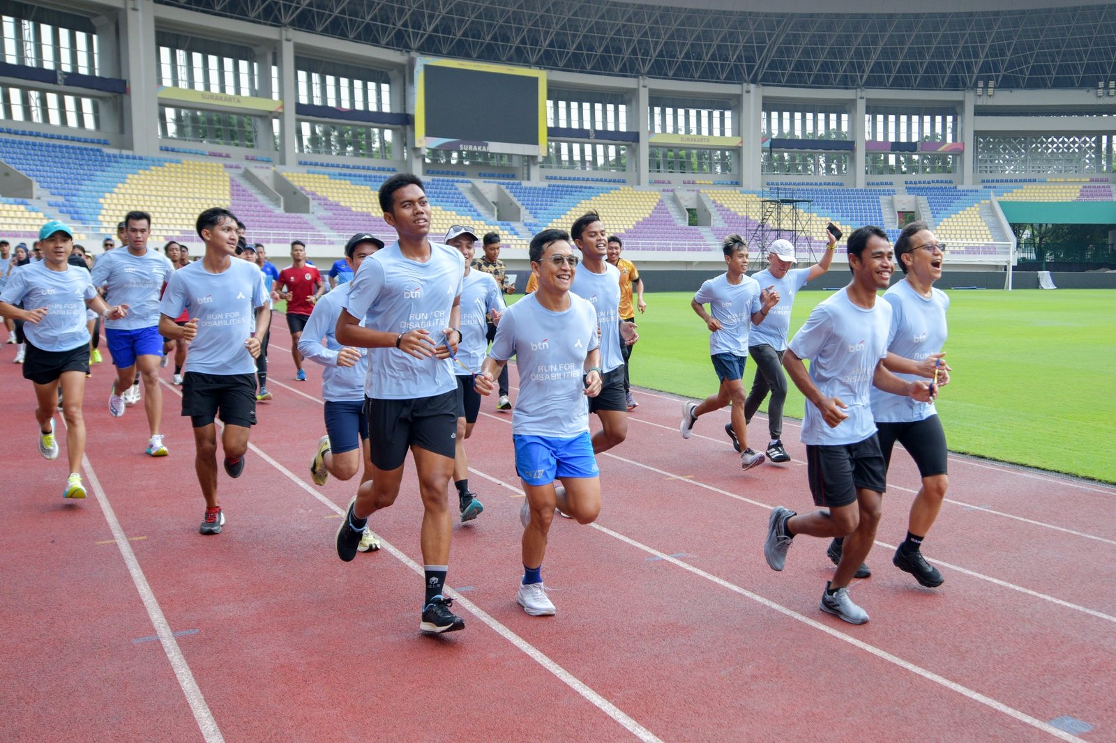 Menteri Kesehatan RI Budi Gunadi Sadikin (kanan) didampingi Direktur Risk Management BTN Setiyo Wibowo (kedua kiri) bersiap berlari bersama para penyandang disabilitas pada BTN Run for Disabilities, Run for Inclusivity Road to BTN Jakim di Stadion Manahan, Solo, Sabtu (7/2). Selain menjadi bagian rangkaian BTN Jakim 2026, kegiatan lari bersama penyandang disabilitas juga menegaskan komitmen ESG BTN sebagai bank yang inklusif dan memberikan akses setara bagi para difabel. Dalam kesempatan yang sama, BTN menyerahkan bantuan untuk sarana dan prasarana pendukung atlet paralimpik. Selain itu, BTN juga akan melibatkan 10 pelari disabilitas dalam BTN Jakim dan menginisiasi penggalangan dana dari puluhan ribu peserta lari di ajang nasional tersebut.