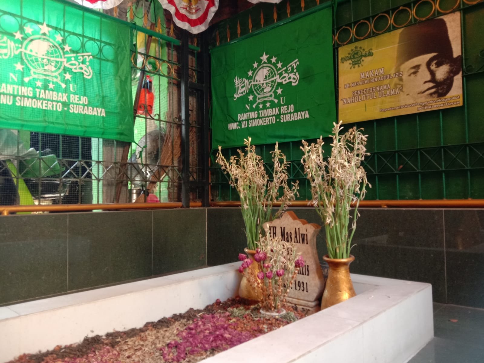 KabarBaik.co – Di tengah hiruk-pikuk perkampungan Rangkah, Tambakrejo, Surabaya tersembunyi sebuah makam yang sarat dengan sejarah. Makam itu milik KH Mas Alwi bin Abdul Aziz, salah satu tokoh penting dalam pendirian Nahdlatul Ulama (NU). Meski dikelilingi rumah warga dan terletak di sebelah tempat pemakaman umum (TPU) Rangkah, makam ini masih menarik perhatian peziarah yang ingin mengenang jasa salah satu penggagas nama NU tersebut.