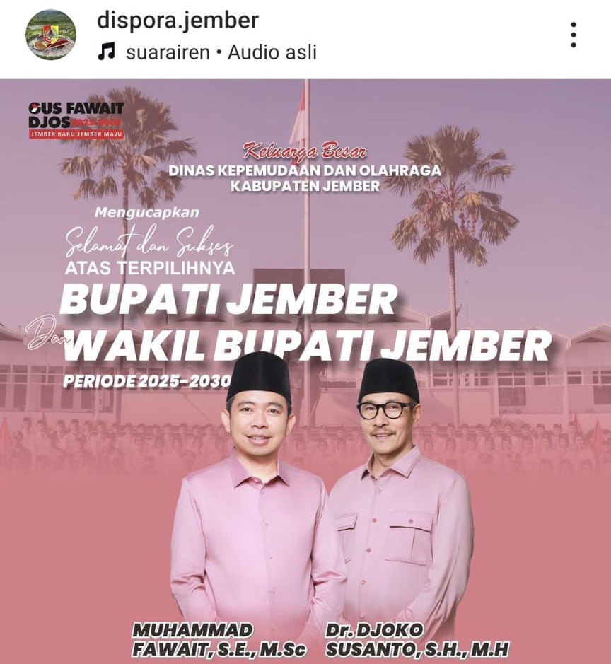 Muncul Ucapan Selamat Paslon Fawait-Djoko di Instargam Dispora Jember, Kepala Dinas Minta Maaf