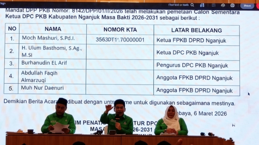 KabarBaik.co, Nganjuk – Proses Musyawarah Cabang (Muscab) DPC PKB Nganjuk akhirnya memunculkan lima nama resmi yang akan bersaing memperebutkan kursi ketua. Kelima tokoh tersebut adalah Ulum Basthomi, Abdullah Faqih Almarzuqi, Moch Mashuri, Nur Daenuri, serta Burhanudin El Arif.