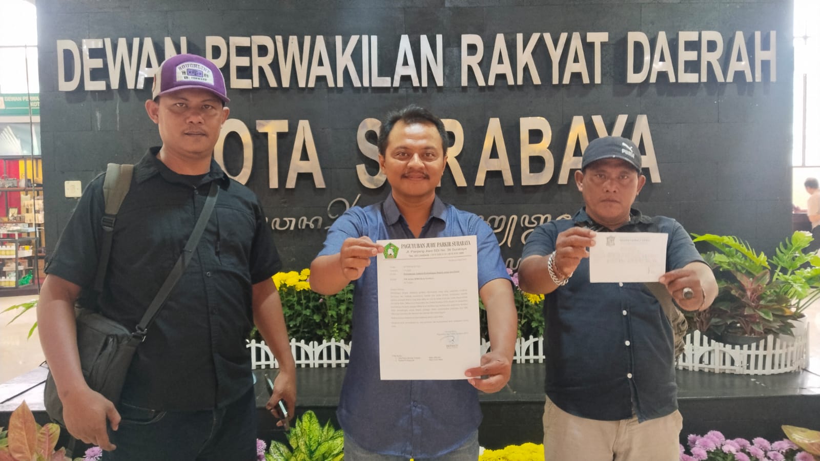 Ketua Paguyuban Jukir Surabaya (PSJ) Izul Fikri usai Ajukan surat permohonan Hearing di DPRD kota Surabaya (Sugiantoro)