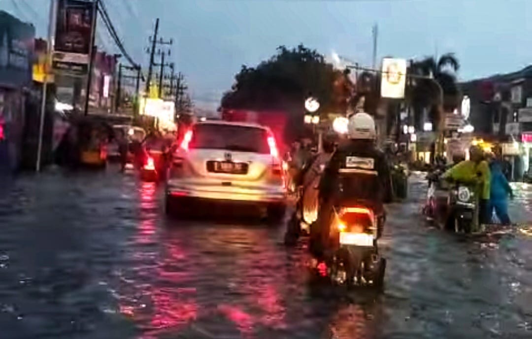 KabarBaik.co – Hujan deras yang mengguyur Kecamatan Waru, Kabupaten Sidoarjo, pada Selasa (24/12) selama lebih dari empat jam telah menyebabkan banjir di 17 desa. Ketinggian air di sejumlah lokasi dilaporkan mencapai 60-100 cm, atau setara lutut orang dewasa, sehingga aktivitas warga terganggu.