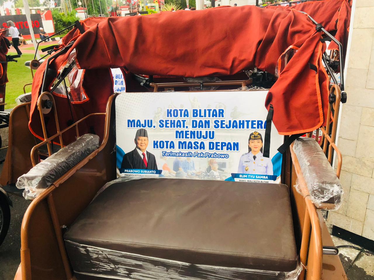 KabarBaik.co, Blitar – Penampakan gambar Wakil Wali Kota Blitar Elim Tyu Samba pada becak listrik bantuan Presiden Prabowo Subianto menuai sorotan publik. Becak listrik tersebut diketahui merupakan bantuan pribadi Presiden yang dibagikan kepada para pengayuh becak di Kota Blitar pada Jumat (6/3).