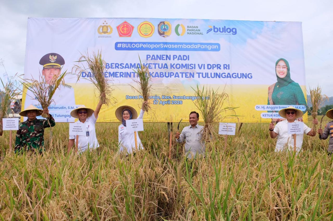 KabarBaik.co, Gresik – Perum Bulog menegaskan komitmennya dalam memperkuat ketahanan pangan nasional melalui kegiatan panen padi bersama Ketua Komisi VI DPR RI Anggia Ermarini dan Pemerintah Kabupaten Tulungagung, Senin (27/4). Kegiatan tersebut berlangsung di Desa Podorejo, Kecamatan Sumbergempol, Jawa Timur.