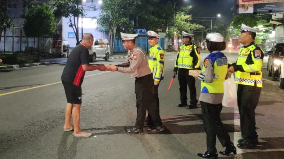 “Personel Satlantas melaksanakan patroli pada jam rawan gangguan Kamtibmas sekaligus membagikan nasi kotak untuk makan sahur kepada warga yang membutuhkan,” ujar Ipda Septian.