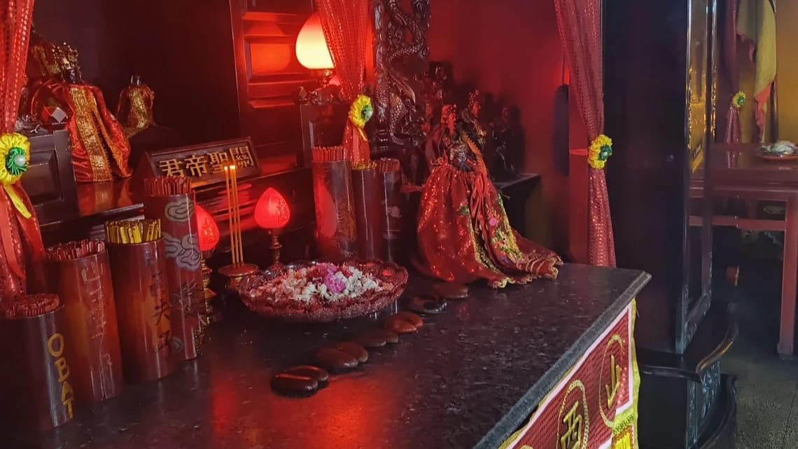 Namun, situasi berubah mencurigakan setelah ritual selesai. Salah satu dari mereka terlihat mengangkat patung Dewa Kwan Kong dari tempatnya. “Sepertinya memang sudah direncanakan. Mereka datang bersama dan berbagi tugas masing-masing,” ujar Eng Bo.