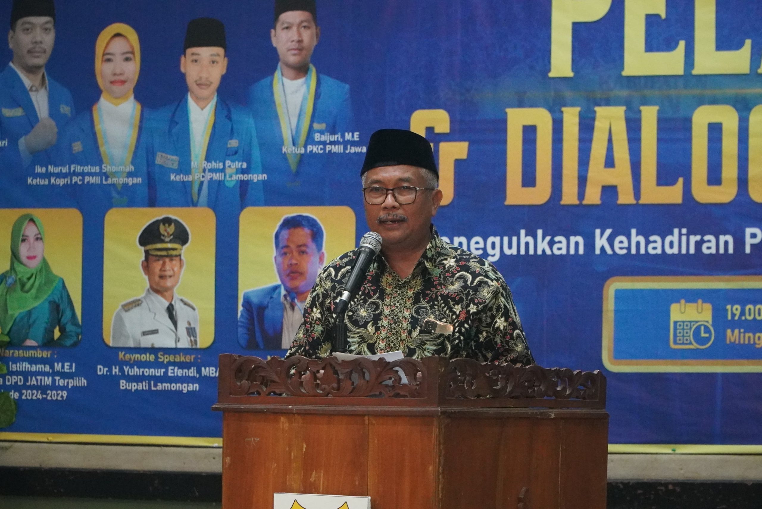 Staf Ahli Bidang Pemerintahan, Hukum dan Politik Setda Lamongan saat pelantikan PC PMII Lamongan. (Foto: Kominfo Lamongan)