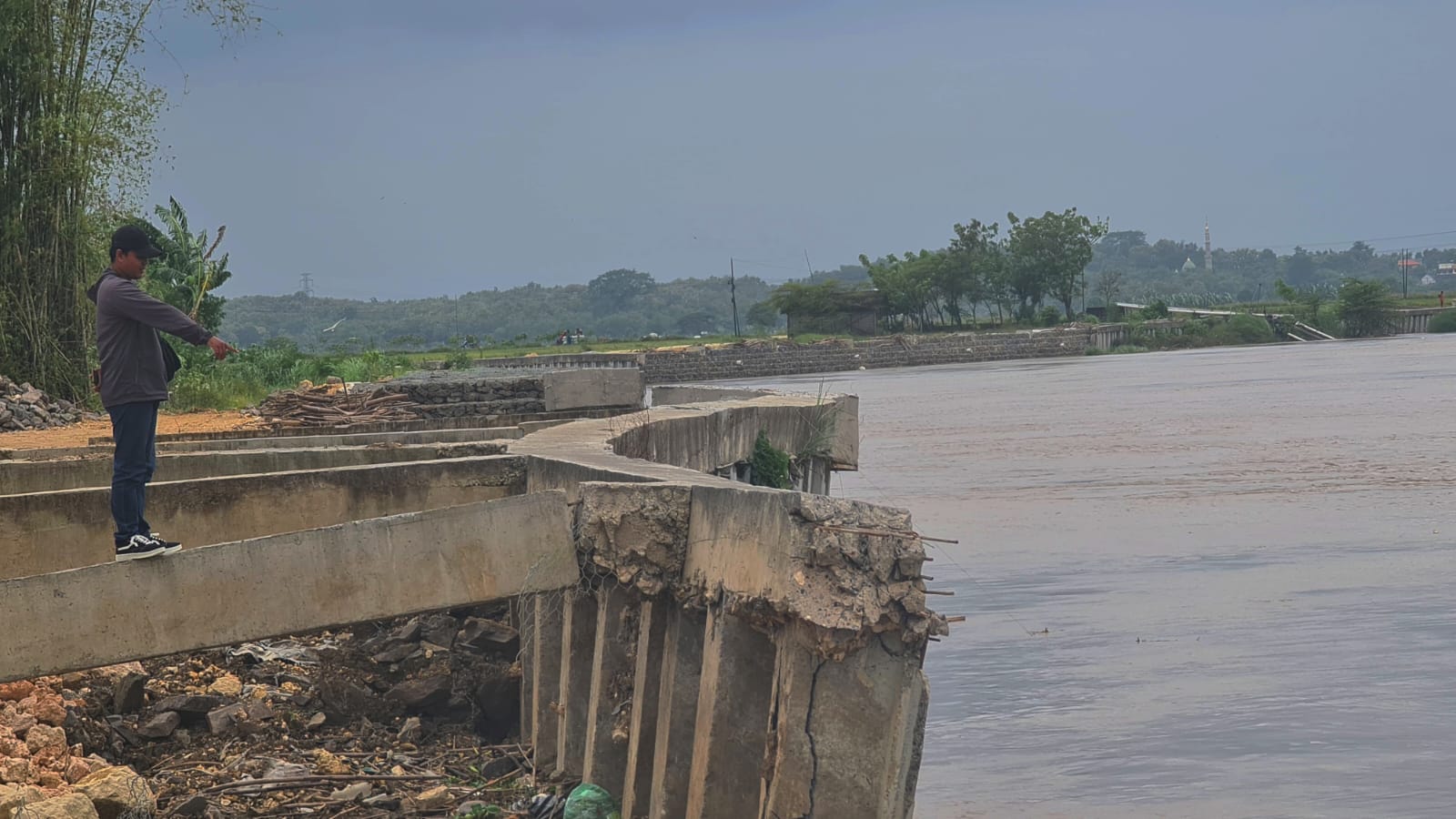 Berdasarkan pantauan di lapangan, kerusakan terjadi di Desa Lebaksari dengan panjang ambrolan mencapai sekitar 40 meter. Sejumlah tiang pancang terlihat patah dan terangkat dari tanah. Selain itu, bronjong yang sebelumnya telah diperbaiki juga kembali ambles sepanjang kurang lebih 30 meter.
