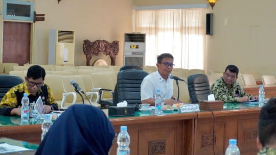 Bupati Bojonegoro Setyo Wahono menghadiri rapat di ruang Anglingdharma Pemkab Bojonegoro. (Foto: Shohibul Umam)