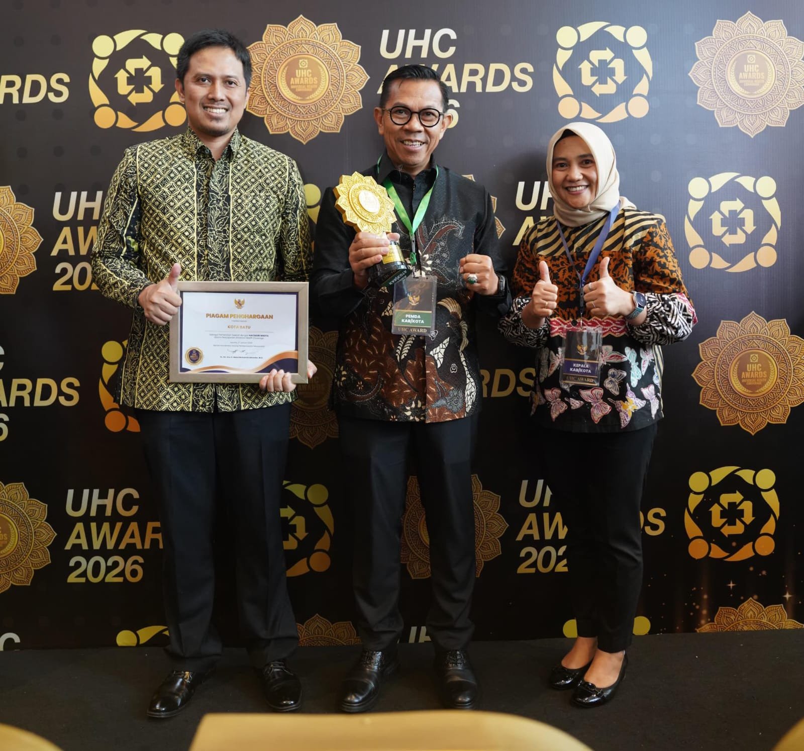 UHC Award merupakan bentuk apresiasi nasional kepada pemerintah daerah yang berhasil mencapai Universal Health Coverage melalui Program Jaminan Kesehatan Nasional (JKN), yakni kondisi ketika seluruh penduduk telah terdaftar dan aktif sebagai peserta JKN sehingga memperoleh akses layanan kesehatan tanpa hambatan biaya.