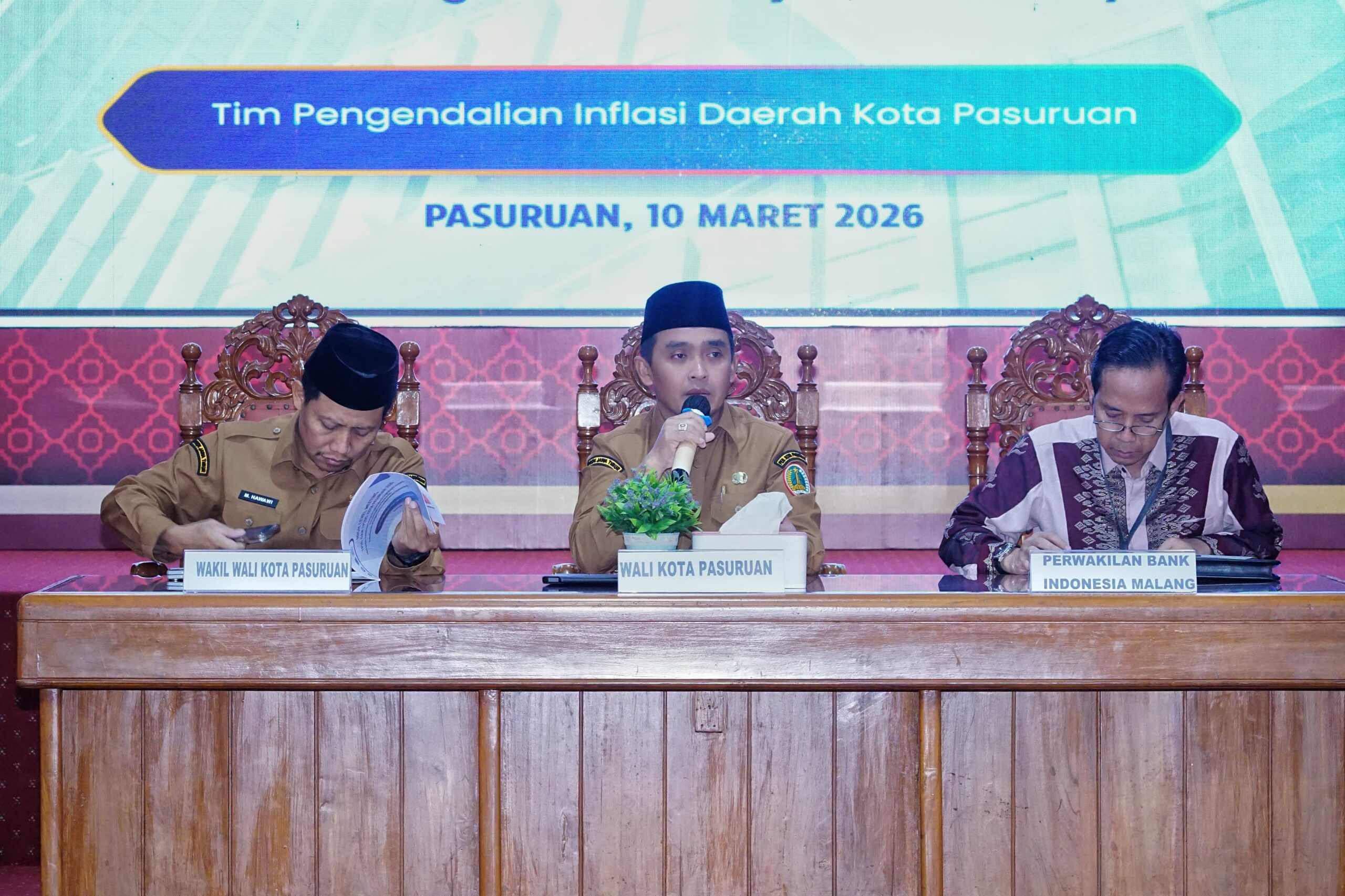 KabarBaik.co, Pasuruan – Pemerintah Kota (Pemkot$ Pasuruan memastikan ketersediaan stok pangan dalam kondisi aman menjelang Idul Fitri 1447 Hijriah. Hal tersebut disampaikan dalam High Level Meeting (HLM) Tim Pengendalian Inflasi Daerah (TPID) dan Tim Percepatan dan Perluasan Digitalisasi Daerah (TP2DD) Tahun 2026 yang digelar di Gedung Gradhika, Selasa (10/3).