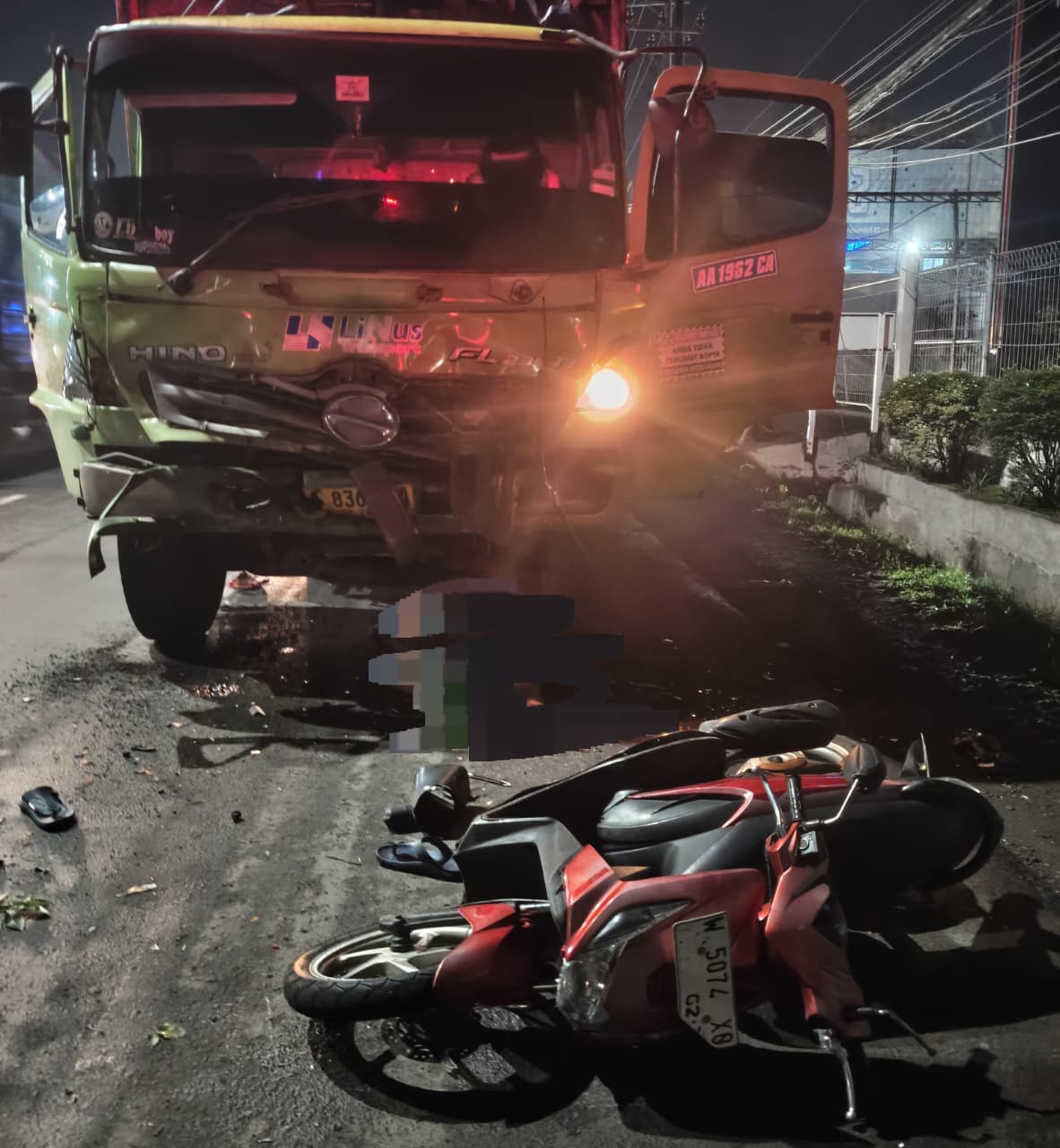 Namun nahas, saat korban mengurangi kecepatan, dari arah belakang melaju truk tronton bernopol AA 8369 OA yang dikemudikan Dadang Supriyono, 38. Truk tersebut menabrak bagian belakang sepeda motor hingga korban terdorong ke depan dan menghantam truk wing box yang berhenti di depannya.