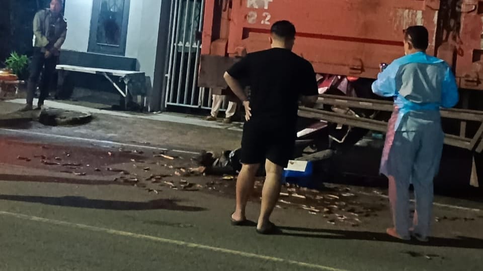 “Berdasarkan keterangan saksi di lokasi kejadian, kendaraan truk tersebut parkir dengan posisi roda masih berada di badan jalan dan tidak memasang segitiga pengaman,” ujar Septian.